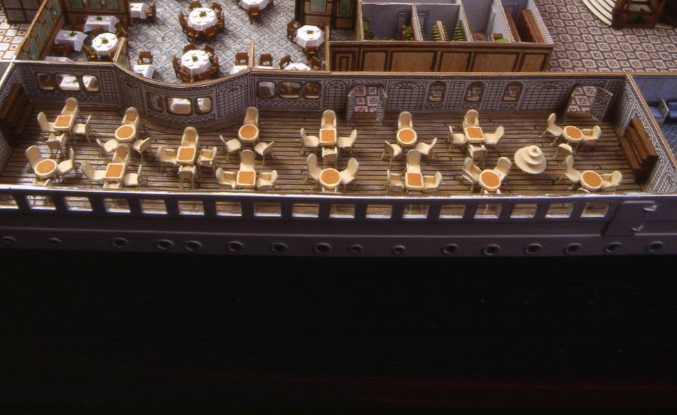 Benvenuto all'interno del modello del Titanic,troverai i quattro ponti superiori completamente arredati. Buona passeggiata! |