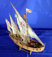 tre navi L’equipaggio dormiva sotto il castello di prua, mentre la cabina dell’Ammiraglio si trovava nel cassero di poppa. La nave era armata con bombarde, colubrine e alcune spingarde portatili. Innalzava lo stendardo di Castiglia e Leon e, sull’albero di mezzana, l’insegna della flotta. |