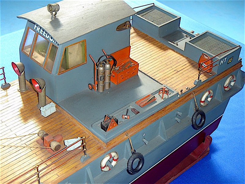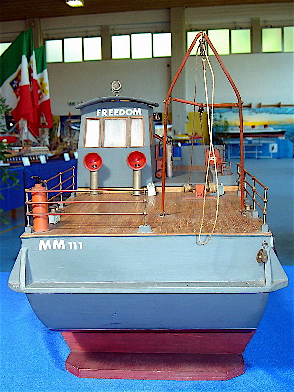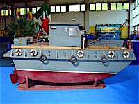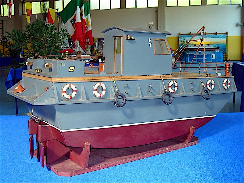 una imbarcazione adibita a servizi portuali Il modello è navigante e radiocomandato. E' mosso da una sola elica azionata da un motore elettrico Due timoni assicurano la direzione. |