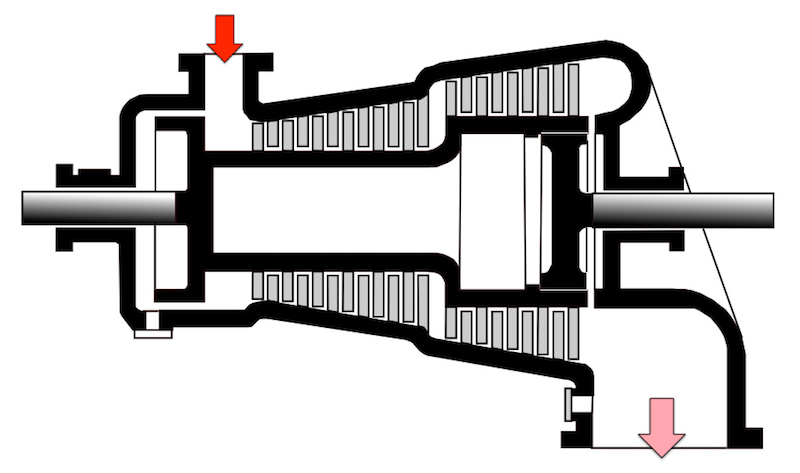diametro dei cilindri aumenta a mano a mano che il vapore diminuisce di