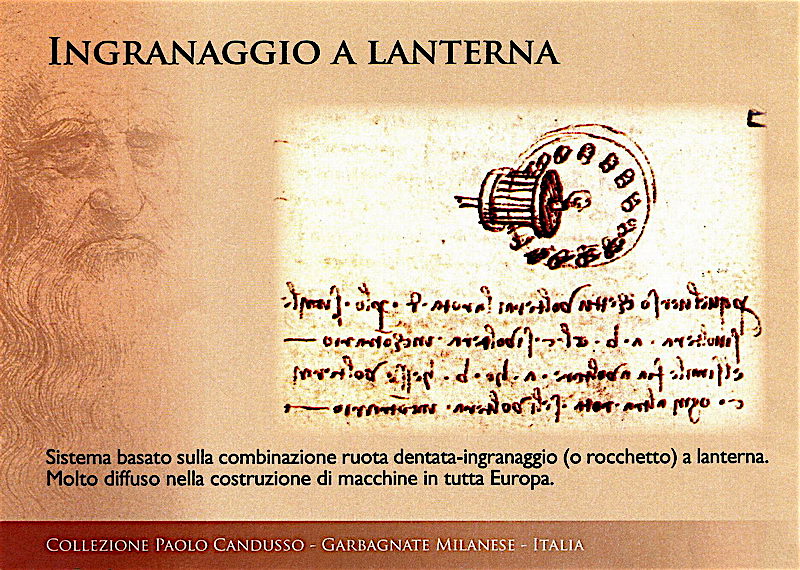 a lanterna Questo modello mostra il sistema di trasmissione pił comune nella meccanica di Leonardo: combinazione ruota dentata - rocchetto a lanterna. |