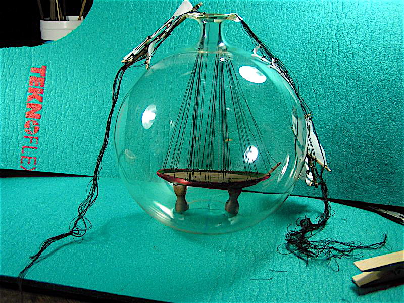 | Qui si vedono un bragozzo, un sandalo e un topo durante la costruzione e dopo l'imbottigliamento. |