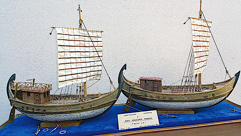 quindi di determinatu privilegi. Grazie ai ritrovamenti sottomarini si sa anche che la maggioranza delle imbarcazioni impiegate era di 3.000 anfore (150 tonnellate). Esistevano anche le "muriophoroi", letteralmente "portatrici di 10.000 anfore (500 tonnellate)", considerate le navi più grandi del periodo fine-repubblicano ed imperiale; il loro limite minimo era stato fissato a 50.000 "modii" (330 tonnellate). Principali caratteristiche strutturali distintive della nave: - tegole (coppi e albricci) delle cabine in terracotta e chiodate - opera viva in lastre di piombo. |