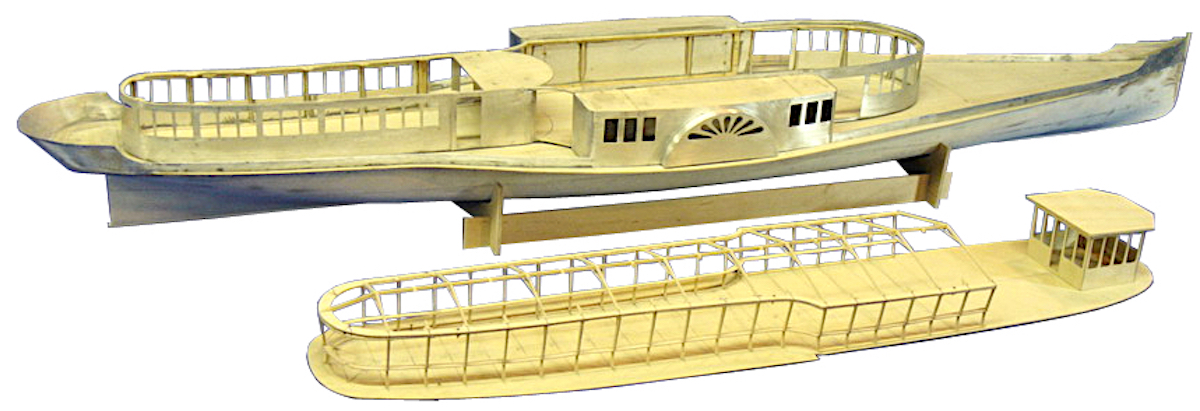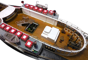 esterni e i locali interni. Nacque solo una discussione sulla posssibilità di riuscire a far navigare il modello, in scala 1:50, di una nave con un pescaggio così limitato e un volume di carena molto ridotto. Io raccolsi la sfida. |