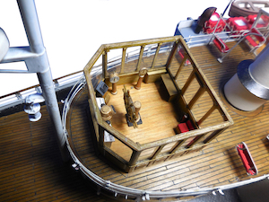 modello Una nave, e naturalmente il suo modello navigante, devono essere dotati di luci. Le luci fondamentali sono quelle “di navigazione” ovvero quelle luci che consentono di individuare la nave, le sue dimensioni e la direzione nella quale si muove rispetto all’osservatore. Questi fanali sono bianchi o colorati e sono visibili per ben determinati angoli. Vedi fanali notturni su: http://www.mitidelmare.it/Fanali_notturni_delle_navi.html Il modello del Piemonte è dotato di ampie vetrature che consentono una visuale completa degli interni. Per questo, oltre ad una accurata ricostruzione dell’arredamento, ho voluto risolvere al meglio il problema dell’illuminazione. Ho rifiutato l’idea di inserire delle semplici sorgenti luminose che dessero “luce” ai locali. La nave è molto bella e anche le lampade interne sono di grande pregio. Ho cercato, nel limite del possibile, di riprodurle nel modello, ovviamente con la necessaria approssimazione. |