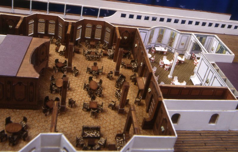 è stato ricavato il Café Parisienne. Per quanto riguarda questo ponte, la prima classe finisce qui. Proseguendo verso poppa si incontrano l'entrata e la sala fumatori di seconda classe. All'esterno di questa c'è una passeggiata, riservata ai passeggeri di seconda classe, e una scala di accesso agli altri ponti. |