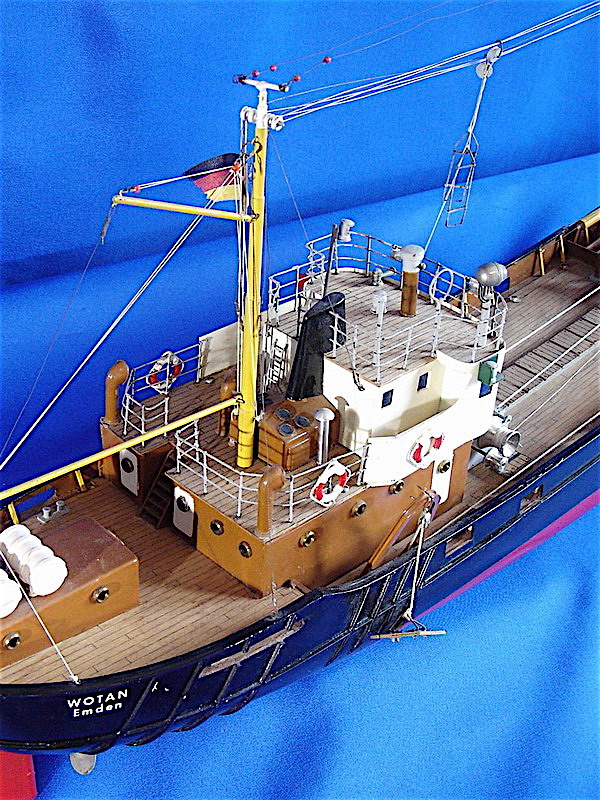 riproduce il peschereccio d’alto mare WOTAN. E' lungo 80 cm. E’ navigante e radiocomandato. |